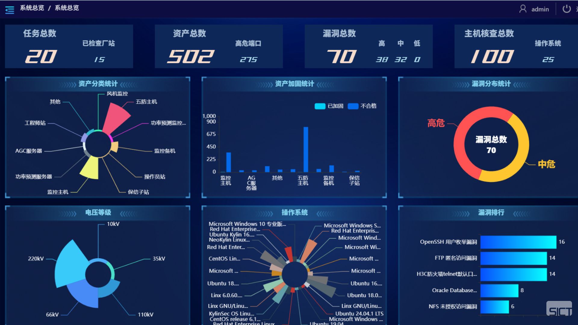 基于全流程風(fēng)險(xiǎn)檢測(cè)與智能加固技術(shù),實(shí)現(xiàn)主站級(jí)設(shè)備基線核查、漏洞修復(fù)一體化運(yùn)維,滿足等保2.0三級(jí)實(shí)時(shí)防護(hù)要求。