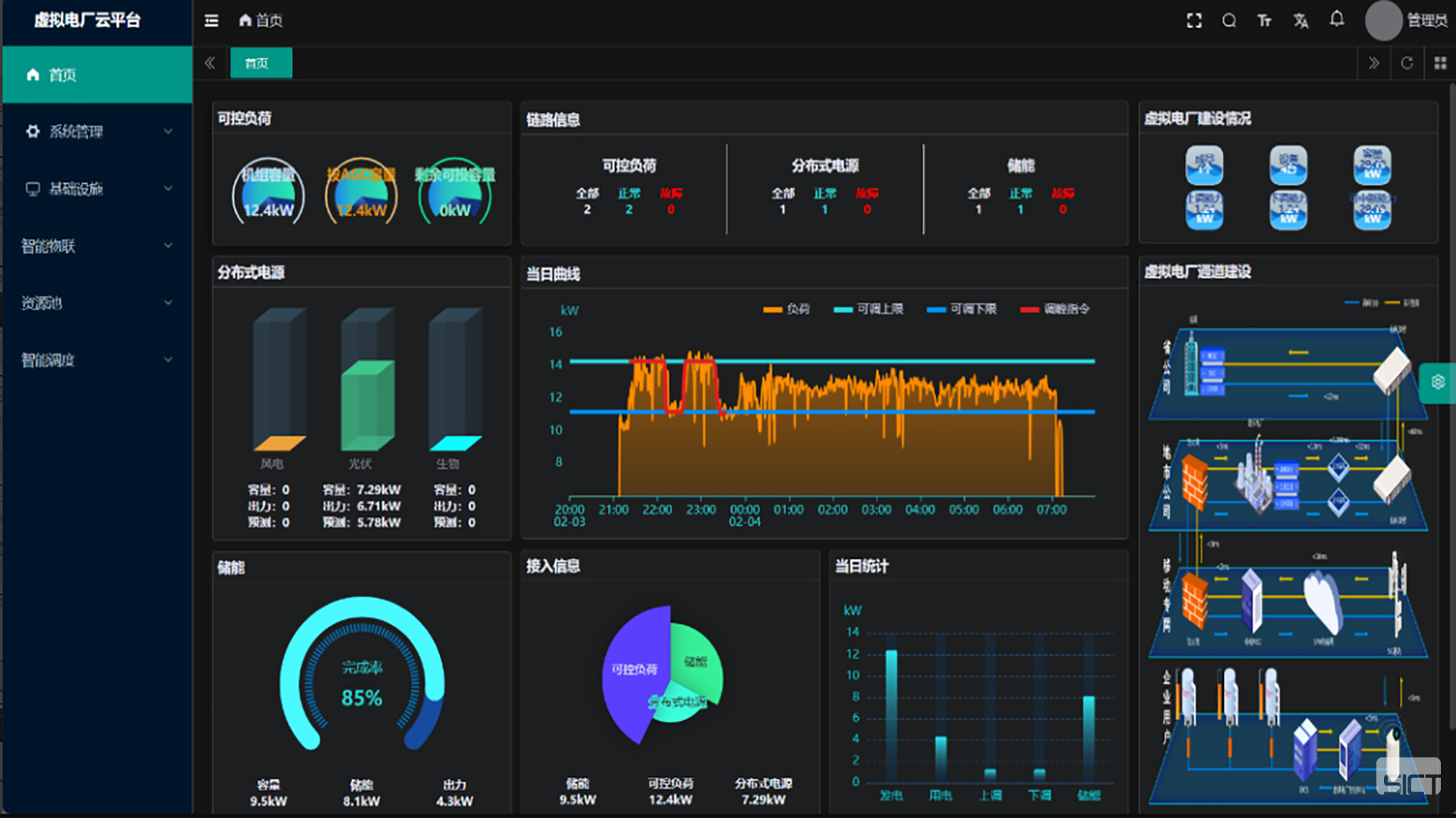 系統(tǒng)以聚合分布式光伏、儲(chǔ)能、可調(diào)負(fù)荷等資源為核心,破解新能源調(diào)控難、分布式資源管理低效等痛點(diǎn)。虛擬電廠通過(guò)聚合分布式電源、儲(chǔ)能及負(fù)荷資源,實(shí)現(xiàn)靈活調(diào)度與電力市場(chǎng)交易,提升新能源消納和電網(wǎng)韌性;微電網(wǎng)能量管理系統(tǒng)整合風(fēng)光儲(chǔ)等多能互補(bǔ),優(yōu)化能源效率,保障可靠供電,推動(dòng)企業(yè)能源數(shù)字化升級(jí)。兩者協(xié)同助力新型電力系統(tǒng)構(gòu)建,加速“雙碳”進(jìn)程。