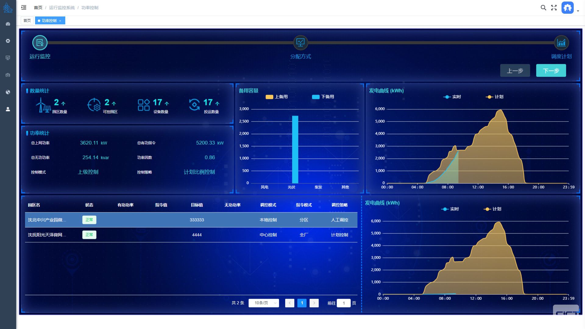 平臺(tái)實(shí)現(xiàn)對(duì)調(diào)控范圍內(nèi)微電網(wǎng)和虛擬電廠的源、網(wǎng)、荷、儲(chǔ)、充各類資源的實(shí)時(shí)監(jiān)控、診斷告警、全景分析、有序管理和協(xié)同控制。調(diào)控中心能量管理系統(tǒng)包括調(diào)控中心能量管理、調(diào)控中心監(jiān)控兩套系統(tǒng),在保證調(diào)控中心內(nèi)各微電網(wǎng)、虛擬電廠安全穩(wěn)定運(yùn)行的基礎(chǔ)上以經(jīng)濟(jì)優(yōu)化運(yùn)行為目標(biāo),對(duì)微電網(wǎng)和虛擬電廠的發(fā)電、配電以及用電進(jìn)行管理和運(yùn)行結(jié)果分析。