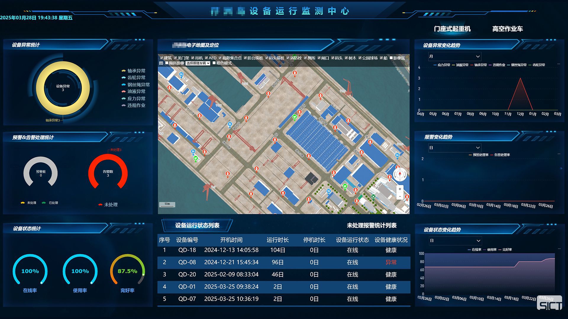 面向船舶制造關(guān)鍵裝備打造的網(wǎng)絡(luò)化、智能化的運(yùn)行狀態(tài)監(jiān)測(cè)與故障診斷一體化平臺(tái)。能夠?qū)﹂T座吊機(jī)、高空作業(yè)車等核心設(shè)備的溫度、振動(dòng)、應(yīng)力、傾斜等運(yùn)行參數(shù)實(shí)時(shí)采集,結(jié)合多源傳感器融合、遠(yuǎn)程通信和智能診斷算法,實(shí)現(xiàn)對(duì)設(shè)備狀態(tài)的全面感知與潛在異常的精準(zhǔn)識(shí)別。同時(shí),通過(guò)可視化手段,直觀呈現(xiàn)設(shè)備運(yùn)行狀況和風(fēng)險(xiǎn)預(yù)警,并與運(yùn)維流程深度聯(lián)動(dòng),形成監(jiān)測(cè)、預(yù)警、決策與執(zhí)行的閉環(huán)管理,有效提升制造裝備的運(yùn)維效率,全面增強(qiáng)船舶制造過(guò)程的安全性、穩(wěn)定性與管理水平。