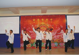 接下來(lái)表演的節(jié)目更是豐富多彩,形式多樣,全所職工一年一度自編自導(dǎo)自演的節(jié)目精彩不斷。開(kāi)場(chǎng)的《鑼鼓舞蹈》在咚咚鼓樂(lè)聲中將聯(lián)歡會(huì)拉開(kāi)了序幕,還有充分體現(xiàn)團(tuán)隊(duì)精神的大合唱《歌唱祖國(guó)/我們走在大路上》、《分手的擁抱/永不退縮》、《明天會(huì)更好》。小合唱、獨(dú)唱《讓世界充滿愛(ài)》、《只要有你》、《黃種人》、《玻璃杯》、《原來(lái)你也在這里》。獨(dú)具特色的《吉他彈唱》,熱鬧喜慶的小品《婚禮》。雙簧更是表演了集全所智慧研制的《智能機(jī)器人》,這種第一次出現(xiàn)的表演形式為聯(lián)歡會(huì)帶來(lái)了高潮,增添了光彩。充滿青春活力的女生舞蹈《美人計(jì)》、《茉莉花》優(yōu)美靚麗,男生舞蹈《窮開(kāi)心》、舞蹈《兔子舞》歡快活潑。最后壓軸的歌伴舞《開(kāi)門(mén)紅》表達(dá)了全所職工對(duì)新的一年即將開(kāi)始的美好愿景,也展現(xiàn)了后勤職工們的多才多藝。