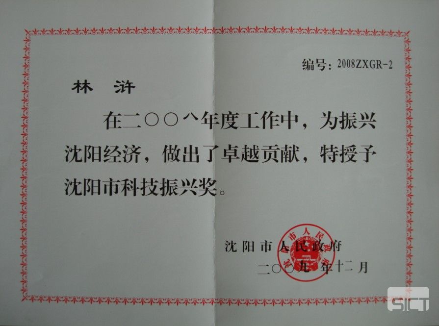 日前,林滸董事長(zhǎng)榮獲沈陽(yáng)市政府授予的“沈陽(yáng)市科技振興獎(jiǎng)”。