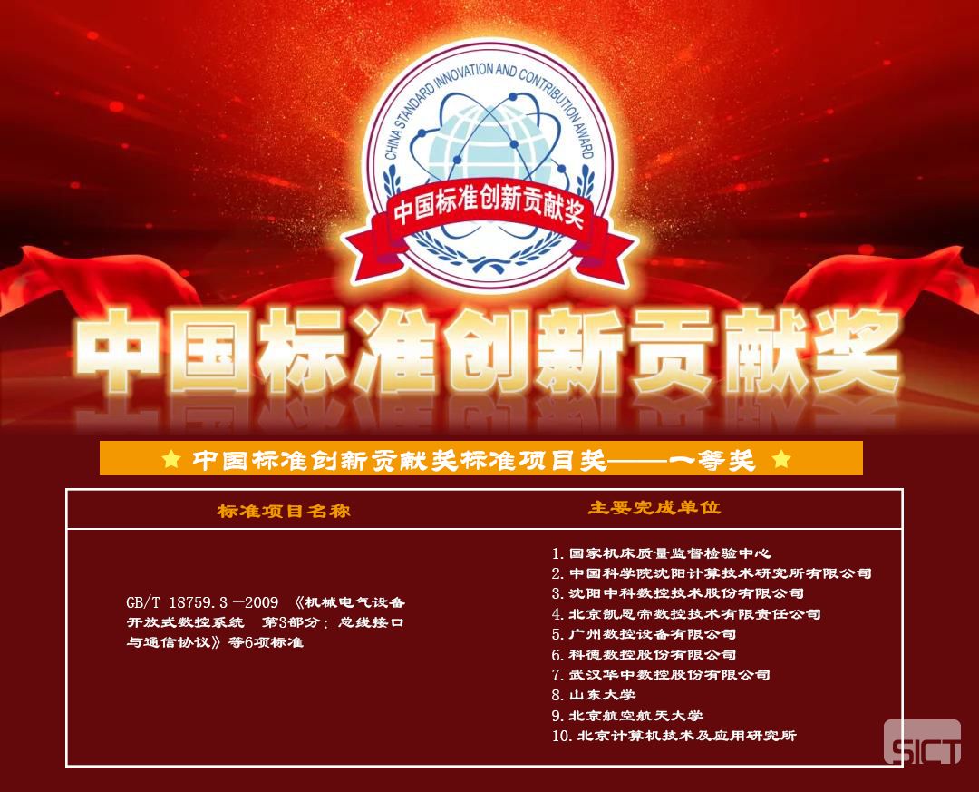 10月14日,第51屆世界標(biāo)準(zhǔn)日當(dāng)天,國家市場監(jiān)管總局(標(biāo)準(zhǔn)委)公布了2020年中國標(biāo)準(zhǔn)創(chuàng)新貢獻獎表彰名單,由中國科學(xué)院沈陽計算技術(shù)研究所有限公司、沈陽中科數(shù)控技術(shù)有限公司、國家機床質(zhì)量監(jiān)督檢驗中心等單位共同制定的開放式數(shù)控系統(tǒng)關(guān)鍵技術(shù)系列標(biāo)準(zhǔn)(GB/T18759)榮獲2020年中國標(biāo)準(zhǔn)創(chuàng)新貢獻獎一等獎。“中國標(biāo)準(zhǔn)創(chuàng)新貢獻獎”由國家市場監(jiān)督管理總局(標(biāo)準(zhǔn)委)設(shè)立,是我國標(biāo)準(zhǔn)化領(lǐng)域的最高榮譽。